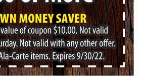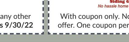 Excludes sale items. May not be combined with other offers. Limit one per customer. Valid at Centerville location only. With Town Money Saver Coupon. Expires 9/30/22. Excludes sale items. May not be combined with other offers. Limit one per customer. Valid at Centerville location only. With Town Money Saver Coupon. Expires 9/30/22. $20 OFF Purchase of $100 or More $10 OFF Purchase of $50 or More TRADE IN TO TRADE UP! Bring us your quality used equipment for bigger discounts! www.PlayItAgainSports.com FREE FREE Roof Inspection & Replacement Estimate Gutter Guards With the Purchase of a New Roof & Gutters (937) 339-ROOF Present coupon at time of estimate. Prior sales excluded. Not valid with other offers. Expires 9/30/2022 Present coupon at time of estimate. Prior sales excluded. Not valid with other offers. Expires 9/30/2022 Present coupon at time of estimate. Prior sales excluded. Not valid with other offers. Expires 9/30/2022 60 MONTHS ZERO DOWN ZERO INTEREST and FREE Lifetime Warranty Upgrade On Any New Roof!