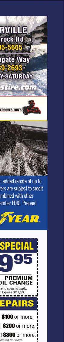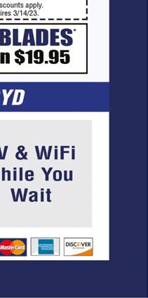(W) Excludes oil changes and tires. Cannot be combined with any other offers. Must present coupon. Expires 3/2/23. $AVE WHERE YOU NEED IT Any Repair of $150 or More... $15 OFF Any Repair of $200 or More... $20 OFF Any Repair of $350 or More... $35 OFF Any Repair of $500 or More... $50 OFF