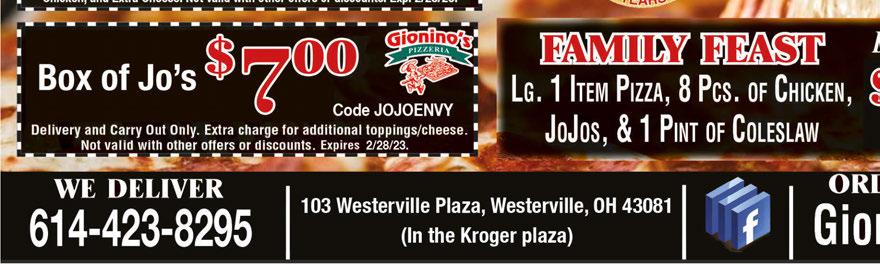 Support Local Businesses SHOP LOCAL & WIN! See inside for details on how to become eligible to win $500 in Gift Cards. TO ADVERTISE, CALL 614.679.8160 TownMoneySaver.com WESTERVILLE February 2023 Shop locally. Save locally. LOOK INSIDE FOR GREAT LOCAL DEALS! Mid Ohio CPA, Cardinal Pizza, Edwin Loy Home, Stone & Sparrow…and much more! Live. Love.Local.