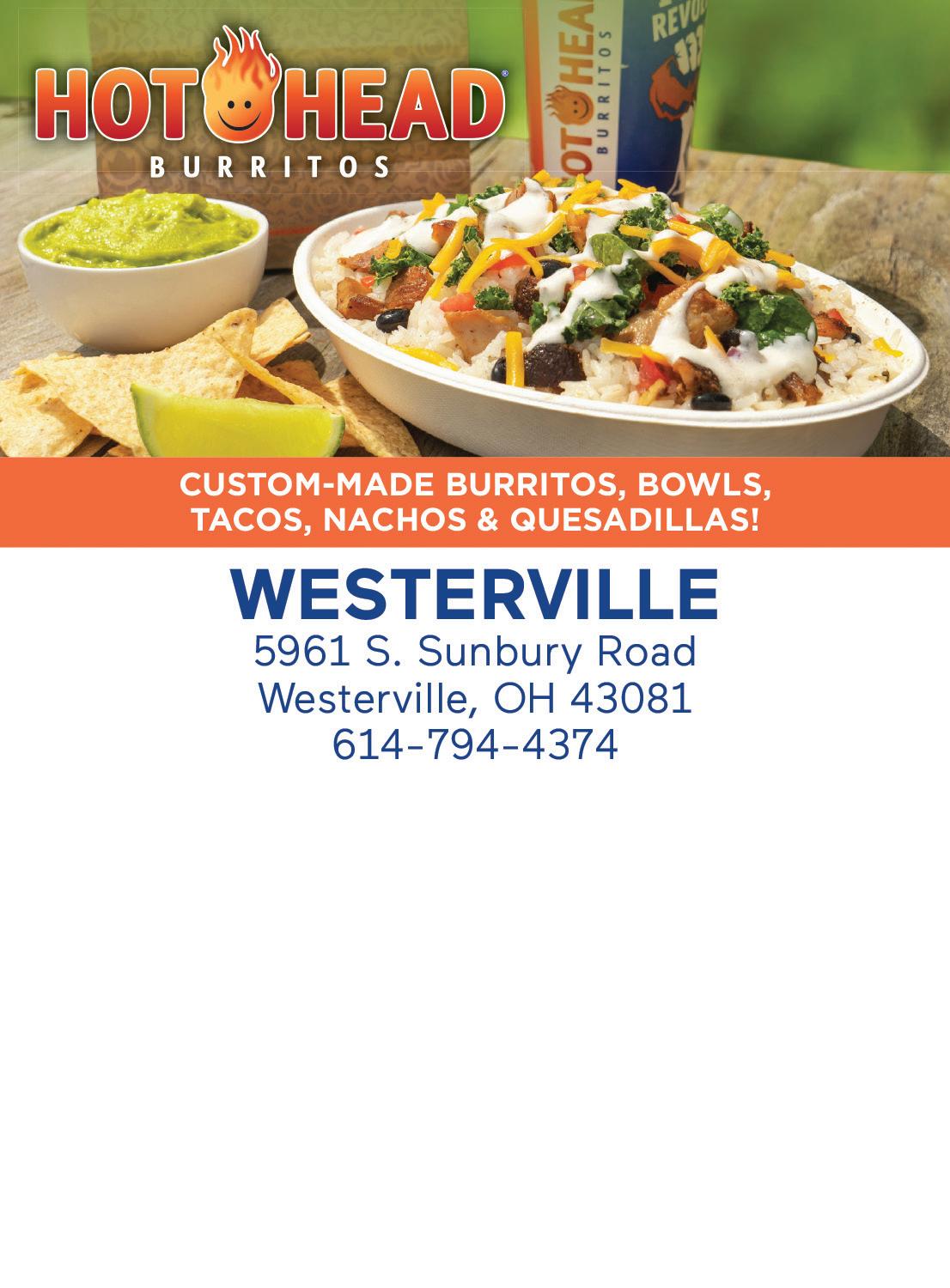$5 OFF Any Watch Battery Any Jewelry Repair Must present coupon. No expiration date. W Must present coupon. No expiration date. W Westerville Jewelers Westerville Jewelers 10% OFF BUY ONE GET ONE FREE BUY ONE GET ONE FREE REGULAR BURRITO OR BOWL REGULAR BURRITO OR BOWL VALID AT WESTERVILLE ONLY VALID TUESDAY-SATURDAY ONLY Not valid online, for delivery or with any other offer. 1/2 off burrito or bowl is of equal or lesser value. One coupon per visit. Exp. 2/2/23 VALID AT WESTERVILLE ONLY VALID TUESDAY-SATURDAY ONLY Not valid online, for delivery or with any other offer. 1/2 off burrito or bowl is of equal or lesser value. One coupon per visit. Exp. 2/2/23