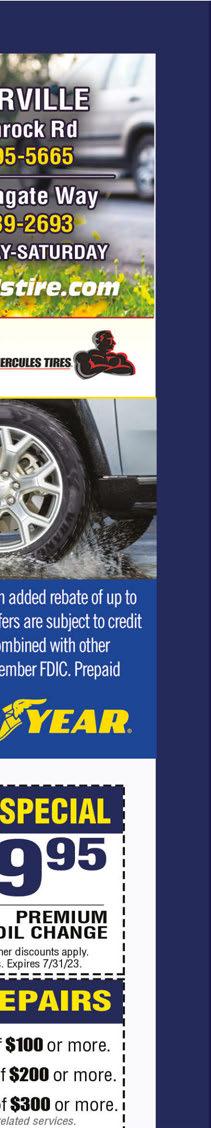 Most cars and trucks. Additional fees may apply. Cannot be combined with any other coupon or offer. Must present coupon. Expires 8/3/23. $25 OFF15% OFF Any Air Conditioning Repair (Excludes recharge only) Any Service Over $350.00 (Cannot exceed $100) *Excludes oil changes and tires. Cannot be combined with any other coupon or offer. Must present coupon. Expires 8/3/23. SUMMER VALUE SERVICE Lube, oil, and filter change, 42 point inspection, tire rotation, cooling system check, Alignment Check and brake inspection! Starting at $64.95 Most cars and trucks. Additional fees may apply. Cannot be combined with any other coupon or offer. Must present coupon. Expires 8/3/23. NOW HIRING TECHNICIANS ONEDAYGARAGEFLOORS.COM Initial visit only. All home owners must be present. Expires 7/31/23 NOT EPOXY, OUR COATINGS... • 6X Stronger Than Epoxy • 98% More Flexible • 2X Better Adhesion One Day Installation • Will Not Chip or Peel • LIFETIME Residential Warranty • Easy To Keep Clean • 100% Antibacterial, Antimicrobial and Easy on the Feet INSTALLATION WHEN YOU MENTION TOWNMONEYSAVER 614.694.0077 OneDayGarageFloors.com 406 Morrison Rd, Columbus, OH 43213