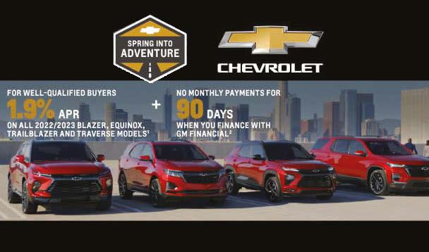 2023 CHEVROLET EQUINOX LT 2023 CHEVROLET CAMARO 1LT 2022 CHEVROLET SILVERADO *See website for full disclosures. Please contact dealer for details. Expires 8/3/23. Buy For $29,640 90 day payment deferral for well qualified buyers when financed with GM Financial 1.9% for 36 months Buy For $36,245 or lease for $450/month for 48 months with 10,000 miles per year. $3999 Down Buy For $54,365 or lease for $576/month for 36 months with 12,000 miles per year. $3999 Down STOP BY, BUILD YOUR VEHICLE, AND LOCK IN YOUR SAVINGS UNTIL YOUR NEW FORD ARRIVES! CENTRAL OHIO’S #1 CHEVY DEALER! Stock # P35836 Stock # P35316 THE LOT IS FILLING UP! 2023 FORD F150 TRUCKS OVER 60 IN STOCK 2023 FORD SUPER DUTY TRUCKS OVER 130 IN STOCK