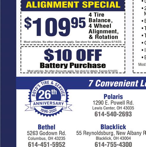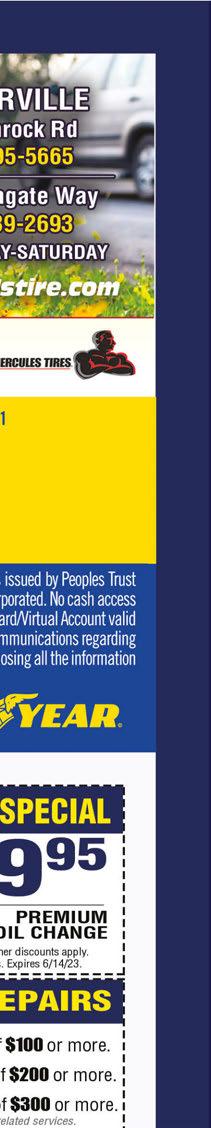 TO ADVERTISE, CALL 614.679.8160 TownMoneySaver.com Shop locally. Save locally. We’ll Take Care of your Lawn Just like It’s Our OWN Call (614) 808-4446 www.cardinallawns.com We also offer these additional services: • Insect & Grub Control • Pest & Mosquito Control • Tree & Shrub Care • Core Aeration NEW CUSTOMER SPECIAL $25 OFF Any Program You Choose + 2 Free Soil Applications New customers only. Not valid with any other offers. Expires 6/1/23. For your convenience, our services are continual. “Technician is very considerate” ~ Helen B., New Albany, OH “Cardinal Lawns did a fabulous job this year. It’s only our second year but the grass looks much better than it ever has in the 12 years we lived here. Can’t wait til you return” ~ Mike W., Gahanna, OH • Seeding, Lawn Renovation, Slice Seeding • Mole Control FREE Liquid Aeration with Basic Lawn Care Program Up to 15,000 sq. ft. New customers only. Not valid with any other offers. Expires 6/1/23. For your convenience, our services are continual. (New customers only. $150 value.) WESTERVILLE
