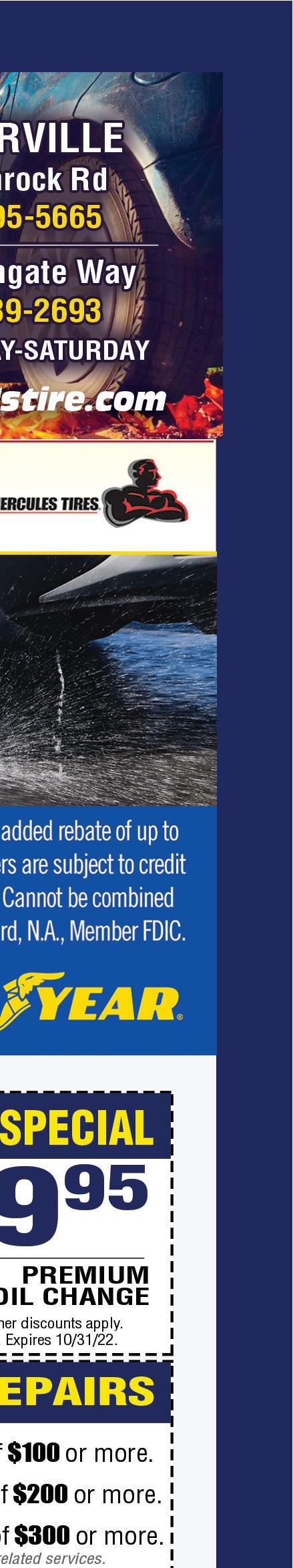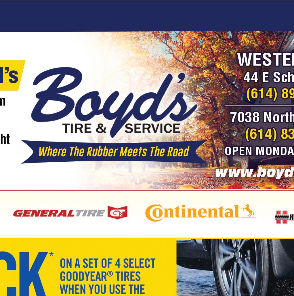 IF YOU NEED... Gravel, Tailgating, Grading, Reconstruction, or a Whole New Driveway, WE CAN HELP! www.drivewayohio.com • 740-967-2444 Locally Owned Personalized On-Site FREE Estimate Visit our website or Facebook to see video on our 4 step process to reclaim and refresh your driveway! Cannot be combined with any other coupon or offer. Must present coupon at time of service. Expires 10/27/22. Cannot be combined with any other coupon or offer. Must present coupon at time of service. Expires 10/27/22. FALL VALUE SERVICE $25 OFF $50 OFF ALIGNMENTS Lube, oil, and filter change, 42 point inspection, tire rotation, cooling system check, Alignment Check and brake inspection! Starting at $64.95 $15 OFF TWO WHEEL BRAKE SERVICE OR FOUR WHEEL BRAKE SERVICE Most cars and trucks. Additional fees may apply. Cannot be combined with any other coupon or offer. Must present coupon at time of service. Expires 10/27/22.