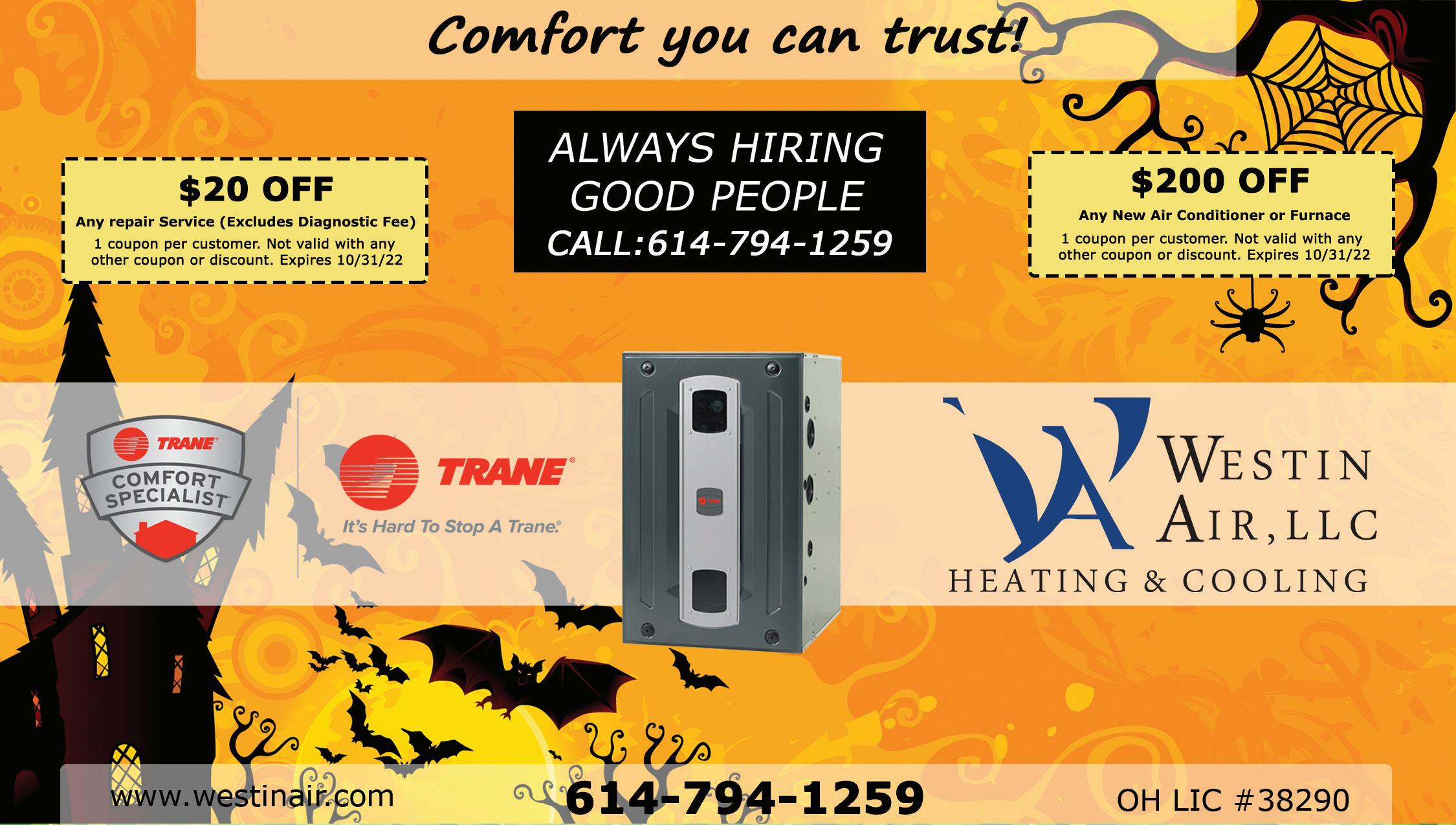 614.647.3993 myfivestarhomeservices.com FALL PRE-SEASON SALE Lowest Prices of the Year! (On Qualifying Equipment) 80% E ciency, up to 60k BTU. 13 SEER, up to 2 Ton. Permits not included. Code update not included. Not valid with other o ers or discounts. Must have existing air conditioner. Some restrictions may apply. Expires 10/25/22. 96% E ciency, up to 60k BTU. 13 SEER, up to 2 Ton. Not valid for 80% to 96%. Permits not included. Code update not included. Not valid with other o ers or discounts. Must have existing air conditioner. Some restrictions may apply. Expires 10/25/22. 80% E ciency, up to 60k BTU. Must mention coupon with scheduling. Not valid with other o ers or discounts. Some restrictions may apply. Call for any questions or concerns. Expires 10/25/22. 96% E ciency, up to 60k BTU. Not valid for 80% to 96%. Must mentioncoupon with scheduling. Not valid with other o ers or discounts. Some restrictions may apply. Call for any questions or concerns. Expires 10/25/22. FURNACE & AC 96% HIGH-EFFICIENCY 7,999 FURNACE & AC 6,999 GAS FURNACE 96% HIGH-EFFICIENCY 80% EFFICIENCY 80% EFFICIENCY 3,999 GAS FURNACE 3,499 HVAC HVAC HVAC HVAC HVAC HVAC HVAC HVAC PLUMBING PLUMBING PLUMBING HVAC & PLUMBING WHOLE HOUSE HUMIDIFIER Must mention coupon with scheduling. Not valid with other o ers or discounts. Some restrictions may apply. Up to 3000 square foot home. Expires 10/25/22. Must mention coupon with scheduling. Not valid with other o ers or discounts. Some restrictions may apply. Expires 10/12/22 must schedule by Oct. 12 up to 3000 square foot house 14 SEER, up to 2 Ton. Permits not included. Code update not included. Not valid with other o ers or discounts. Must have existing air handler and heat pump. Some restrictions may apply. Expires 10/25/22. ELECTRIC FURNACE & HEAT PUMP 6,999 499 Must mention coupon with scheduling. Not valid with other o ers or discounts. Some restrictions may apply. Expires 10/25/22. FREE HOME AIR CLEANER with purchase of furnace and AC system (Reg. $899) (Reg. $99) Must mention coupon with scheduling. Not valid with other o ers or discounts. Some restrictions may apply. Expires 10/25/22. Must mention coupon with scheduling. Not valid with other o ers or discounts. Some restrictions may apply. Expires 10/25/22. TANKLESS WATER HEATER OFF 500 TANK WATER HEATER OFF 150 Must mention coupon with scheduling. Not valid with other o ers or discounts. Some restrictions may apply. Expires 10/25/22. DRAIN SERVICES 10 OFF with any completed paid repair Must mention coupon with scheduling. Not valid with other o ers or discounts. Some restrictions may apply. Expires 10/25/22. FREE SERVICE CALL (Reg. $99) 49