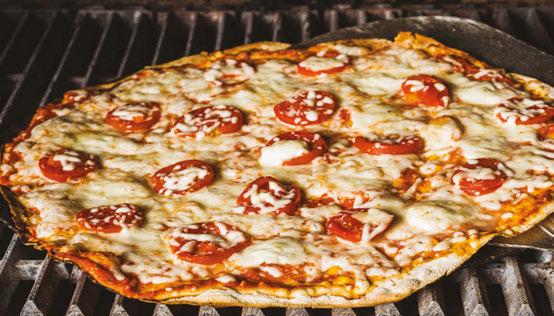 Preheat grill on high. Brush a square of foil with olive oil. Roll pizza dough onto foil, top with pizza sauce, cheeses and toppings. Pick up the edges of the foil and place directly on grill. Close grill and allow to cook for 5-7 minutes or until cheese is melted and edges begin to char. Remove from grill, transfer to a cutting board. Sprinkle with parmesan & pepper.