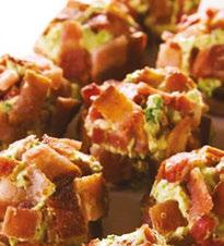 Using a spoon, scoop out 6 even-sized amounts of the mixture and form into balls. Add the balls to the bacon bits and roll around until completely covered.