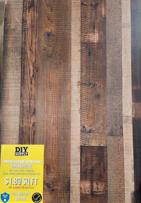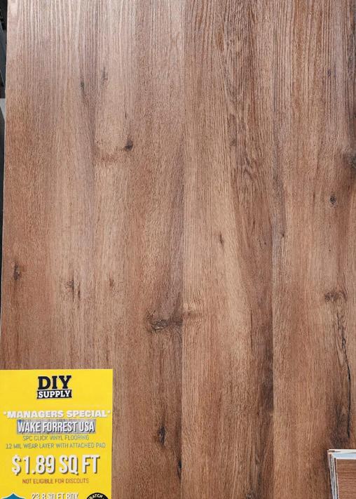 480 E University Drive, Building 5 Somerset, KY 42503 • (606)-425-1782 VETERANS RECEIVE 10% OFF EVERY DAY! $1.89 SQ. FT! Open Mon.-Sat. 9 a.m to 5 p.m 100% WATERPROOF AND SCRATCH RESISTANT FLOORING WITH PAD ATTACHED! 10 COLORS TO CHOOSE FROM!