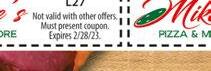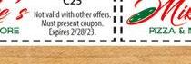 $3.99 $2 OFF ANY FOOD ENTREE Excludes breakfast, kids and side items. Any flatbread, 24 oz. smoothie and a side. Excludes breakfast. $8.00 FLATBREAD COMBO ANY 24 OZ SMOOTHIE 3287 Sterns Rd, Lambertville (734) 568-6682 Exp. 2/28/23 Tropical Smoothie Cafe Valid at Lambertville location. Valid in-cafe only. Not valid with other offers or discount, third party services, online orders or the Tropical Reward® app. Must surrender original coupon at time of purchase. Copies not accepted. One time use only. Limit one coupon per customer per visit. Price plus applicable tax required. With purchase of any food item at regular price. Excludes breakfast, kids and side items. Exp. 2/28/23 Tropical Smoothie Cafe Valid at Lambertville location. Valid in-cafe only. Not valid with other offers or discount, third party services, online orders or the Tropical Reward® app. Must surrender original coupon at time of purchase. Copies not accepted. One time use only. Limit one coupon per customer per visit. Price plus applicable tax required. $2.99 ANY 24 OZ SMOOTHIE Exp. 2/28/23 Tropical Smoothie Cafe Valid at Lambertville location. Valid in-cafe only. Not valid with other offers or discount, third party services, online orders or the Tropical Reward® app. Must surrender original coupon at time of purchase. Copies not accepted. One time use only. Limit one coupon per customer per visit. Price plus applicable tax required. Exp. 2/28/23 Tropical Smoothie Cafe Valid at Lambertville location. Valid in-cafe only. Not valid with other offers or discount, third party services, online orders or the Tropical Reward® app. Must surrender original coupon at time of purchase. Copies not accepted. One time use only. Limit one coupon per customer per visit. Price plus applicable tax required. RISE N’ SHINE ON TROPIC TIME 8525 Secor Rd (Corner of Secor & Consear) Lambertville 734-856-3838 Select Appetizers 1/2 OFF DINNER SPECIAL With purchase of Dinner Entree. Dine In only.1 coupon per pseon. Not valid with other offers. With coupon. Expires 2/28/23 Mon - Thurs 11am-10pm Fri & Sat 11am-11pm Sun noon-10pm (KITCHEN CLOSES 1 HOUR BEFORE CLOSING) Any Lunch 11AM-4PM Excludes alcohol, Dine In only. 1 coupon per pseon. Not valid with other offers. With coupon. Expires 2/28/23 $2OFF LUNCH SPECIAL $5OFF purchase of $30 or more Excludes alcohol, Dine In only. 1 coupon per pseon. Not valid with other offers. With coupon. Expires 2/28/23 HAPPY HOUR 3-6pm daily Margs $3 • Glass of Wine $4 Well (Mixed) Drinks $3 22 oz. Domestic Draft $3.50 Family owned & operated since 2003 Ask about our Dinner for 2 VALENTINE SPECIAL Bloody Mary & Mimosa Bar Every Sunday 12-4pm