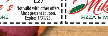 • Reliable Detailing • Rust Proofing • Paint Protection • Undercoating • Let Us Sanitize Your Vehicles 3235 Holland-Sylvania Rd Toledo 43615 419.841.4646 TSTOfToledo@gmail.com Make us your first stop for your AUTO PROTECTION! Let us get your vehicle ready for Winter at YOUR DETAILING HEADQUARTERS Present This Gift Certificate for 10% OFF • Window Tinting • Undercoating • Rust Proofing TST Appearance With TMS coupon. Not valid other offers. Expires 1/31/23 Give Your Vehicle A COMPLETE MAKE-OVER TODAY! PARTY ROOM AVAILABLE 4709 DOUGLAS RD 419-474-5414 DINE-IN OR CARRY OUT! OPEN DAILY AT 4PM Sun noon-8pm Tues-Thurs noon-8pm Fri, Sat noon-9pm 4635 DOUGLAS RD 567-315-8944 A whole differrent level of goodness! DAILY SPECIALS Dine-In only MON $3 OFF Daily Specials cannot be combined with any other coupon or offers. Steak or Chicken TUES $3 OFF Chimichangas WED $3 OFF Fajitas THURS $3 OFF Pollo Vandido Free Wi Fi DINE-IN OR CARRY OUT! $5 Off your purchase of $30 or more Valid Anytime • Dine-In only El Nuevo Vallarta Witn TMS coupon. Cannot be combined with any other coupon or offers. Expires 1/31/23 Heating & Air Conditioning 419-727-1923 6226 American Rd., Tol 43612 www.ShamyHeating.com For Emergencies Call Anytime Day or Night... We Are Here For You! Your Trusted Heating & Cooling Contractor IN THE GREATER TOLEDO AREA & SOUTHEAST MICHIGAN • Family Owned & Operated since 1981 • Honest Answers & Cost Effective Solutions • Friendly, Helpful & Knowledgeable Staff • Neat, Clean and Respectful Technicians • On-Time Arrival with Status Updates Reg. $139 $109 Save Now! $25 OFF Any Service Repair with this Coupon Must be presented at time of service. No Expiration Date. Not valid with any other offers. Bonus Savings $1,700 REBATE Get Up to a Why Choose Us for Service and Installations? OFFICE HOURS: Mon-Fri 7am-5pm SERVICE HOURS: Anytime Day or Night! • Prideful & Professional Workmanship • Highest Quality Parts & Equipment • Peace of Mind 10-Year New Installation Warranty • No-Sales Pressure, Ever! - We Treat You LIke We Would Like To Be Treated Offer expires 1/31/23 Call us for details. Expires 2/3/23 And 12 months No Interest, No Payments on a new Lennox® System On Our 21-Point Furnace Tune Up