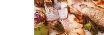 Mash 4 Tbsp butter with the parsley, chives, lemon zest, lemon juice and mustard in a small bowl. Scoop the butter mixture onto a sheet of plastic wrap. Wrap up and form into a 3” log. Refrigerate until rm, about 30 min. Preheat the oven to 450˚. Generously season the steaks on both sides with salt and pepper. Wrap each steak around the edge with a slice of bacon and secure with a toothpick.