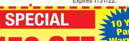 We remove dangerous trip hazards & negative drainage DUE TO SUNKEN CONCRETE SURFACES on: Patios, Garage Floors, Sidewalks & Driveways CallPete! We accept all major credit cards 3% charge on credit/debit transactions. 10% OFF with this ad 419-351-4124 A+ MidwestConcreteLeveling.com Free Estimates We do Concrete POWERWASHING & SEALING! Sunken Concrete? Water Puddles Along Foundation? WE CAN HELP! Midwest Concrete Leveling & Sealing, LLC Maximum discount $200.00 Please present coupon at time of estimate. Not valid with other offers. Expires 7/31/22 YOUR ENTIRE LEAFFILTER PURCHASE* Exclusive Offer – Redeem By Phone Today! THE FIRST 50 CALLERS WILL RECEIVE AN ADDITIONAL 15% OFF YOUR ENTIRE INSTALL! **Offer valid at estimate only 10% OFF SENIOR & MILITARY DISCOUNTS FINANCING THAT FITS YOUR BUDGET! 1 1Subject to credit approval. Call for details. 5% OFF PLUS! ADDITIONALLY PROTECT YOUR HOME FROM DAMAGES WITH LEAFFILTER, THE GUTTER GUARD WITH A LIFETIME WARRANTY 2The leading consumer reporting agency conducted a 16 month outdoor test of gutter guards in 2010 and recognized LeafFilter as the “#1 rated professionally installed gutter guard system in America.” Manufactured in Plainwell, Michigan and processed at LMT Mercer Group in Ohio. See Representative for full warranty details. *For those who qualify. One coupon per household. 1-844-440-9814 CALL US TODAY FOR A FREE ESTIMATE Promo Code: 37 LeafFilter.com/15off Take us with you. Download our mobile app today. Shop locally. Save locally. townmoneysaver.com