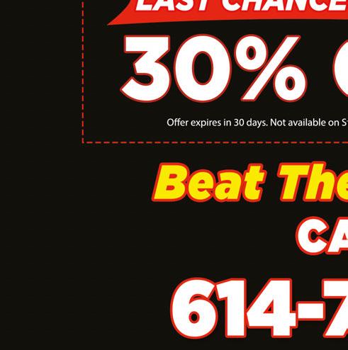 IF YOU NEED... Gravel, Tailgating, Grading, Reconstruction, or a Whole New Driveway, WE CAN HELP! www.drivewayohio.com • 740-967-2444 Locally Owned Personalized On-Site FREE Estimate Visit our website or Facebook to see video on our 4 step process to reclaim and refresh your driveway! ONEDAYGARAGEFLOORS.COM Initial visit only. All home owners must be present. Expires 7/31/23 NOT EPOXY, OUR COATINGS... • 6X Stronger Than Epoxy • 98% More Flexible • 2X Better Adhesion One Day Installation • Will Not Chip or Peel • LIFETIME Residential Warranty • Easy To Keep Clean • 100% Antibacterial, Antimicrobial and Easy on the Feet INSTALLATION WHEN YOU MENTION TOWNMONEYSAVER 614.694.0077 OneDayGarageFloors.com 406 Morrison Rd, Columbus, OH 43213