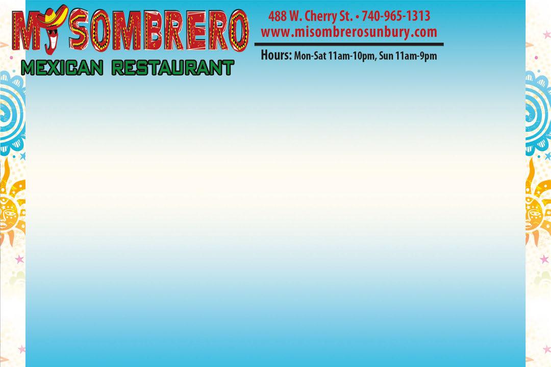 ONLINE ORDERING NOW AVAILABLE! www.misombrerosunbury.com Must present coupon. Not valid with family taco meal or any other discount or offer. Excludes alcohol. Expires 6/29/23. $5 OFF Any Purchase of $30 or More (Sun-Thurs) FATHER’S DAY SPECIAL $25.99 INCLUDES: Chicken or Steak Fajita For Two 2 Serving of Rice & 2 Serving of Beans Must present coupon. Not valid with any other discount or special. VALID JUNE 14TH Only! KIDS EAT FREE EVERY WEDNESDAY (1 child per adult dinner entree purchase. 7yrs old and under.) THURSDAY MARGARITA’S! 50% OFF (Dine-In Only) Includes: 12 Tacos , Soft or Hard, Chicken or Beef, Rice & Beans, Large Bag of Chips & 16oz.Salsa (Available for Take-Out Only) TACO TUESDAYS 1.25¢ Tacos All Day (beef or chicken) FAMILY TACO MEAL $20.99 SPECIAL (May 5th Only) Draft Beer 16oz Imports - $3.25 Domestics - $2.25 10% OFF ANY CATERING We Cater Wedding, Birthday Parties, Family Gathering, Company Parties or Any Special Event! Lunch Buffet 11am-2:30pm 35 sq. ft. minimum Granite Countertop for $1,995.00 or Quartz Countertop for $2,495.00 INSTALLED with a Free sink! Certain restrictions apply. With coupon. One per household. Not valid with other offers. Expires 6/30/23. 101 W. Cherry St., Suite A, Sunbury OH 740-965-1427 whitscustard.com Buy 1 Medium Specialty Whitser, Get 1 Medium at HALF PRICE Must present coupon. Not valid with any other offer. Expires 6/29/23. June’s Whitser of the Month Vanilla Custard with Strawberry, Blueberry & Dark Chocolate Flakes June’s Whittie of the Month Key Lime Pie Sugar Cookies with Key Lime Custard rolled in Graham Cracker Pieces