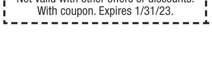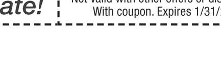 WESTGATE-OTTAWA HILLS Published By Town Money Saver, Inc. Corporate Office • PO Box 356 • Lucas, OH 44843 © 2016 TMS Franchising. All rights reserved. For advertising information, call Jan at 419-376-1344 NEXT ISSUE IN HOMES: FEB. 1-3 ADVERTISING DEADLINE: JANUARY 18 PRSRT STD ECRWSS U.S. POSTAGE PAID Town Money Saver, Inc. townmoneysaver.com MAUMEE 201 Illinois Ave. 419.893.1406 Detail Center • Full Service 1010 W. Alexis 419.476.6517 Exterior Washes 6859 Airport 419.867.1668 Lube Shop • Exterior Washes 5440 W. Central 419.536.7540 Exterior Washes 3211 Woodville Rd. 419.691.3024 Exterior Washes Free Vacuums at EXTERIOR WASH locations! Expresso CAR WASH 5 CONVENIENT LOCATIONS Find one near you today! BASIC WASH EXPRESSO CAR WASH Vehicle exterior only. With TMS coupon. Not valid with other offers. Exp 1/31/23 Wash & Towel Dried Finish $6 BASIC WASH Wash & Towel Dried Finish $6 WORKS PLUS EXPRESSO CAR WASH Vehicle exterior only. With TMS coupon. Not valid with other offers. Exp 1/31/23 Express Wash, Clear Coat, Wheel Brite, Tri-Foam, UB & Towel Dried Finish $9 1/2 OFF WORKS PLUS Express Wash, Clear Coat, Wheel Brite, Tri-Foam, UB & Towel Dried Finish $9 Towel Dry at all locations! For More Details, visit expressocarwash.com • Unlimited Washes • Use at all 5 NW Ohio Sites • Towel Dried as low as.52¢ per wash GO UNLIMITED! HOURS: Mon. - Sat. 8AM - 7PM | Sun. 9AM - 6PM *Closed during inclement weather WE THANK YOU! Active/Veteran, Military & Frontline Heros 20% OFF Unlimited Annual Pass Happy Hour M-Th 2p-5p $5 Margarita (12 oz) 1/2 OFF Nachos beef or chicken $1999 Margarita Pitchers Ladies Night All Day Thurs beef or chicken w/ lettuce & cheese Our New Location Is Now Open! 2500 W. Sylvania TOL 419-472-0700 ORDER ONLINE: LaFiestarestaurante.com Carry-out menu • Reservations accepted Stop in & see our DAILY SPECIALS FORMERLY El Camino Real Try all of our different Margarita flavors Hours (Toledo location) Mon - Thurs 11-9:30 Fri & Sat 11- 10 • Sun 11-9 Visit Our Maumee location: 1406 Reynolds Rd. • 419-897-9222 LUNCH SPECIAL . With coupon. One coupon per table. Dine In Only. Not valid with other specials or offers. Alcohol not included. Exp. 1/31/23 Valid at Toledo loctation only $5 OFF Your purchase of $30 or more Valid at both locations Maumee & Toledo VALID Sun - Thur $3 OFF Purchase of two lunches Mon - Fri until 3pm Taco Tues $2 Tacos . With coupon. One coupon per table. Dine In Only. Not valid with other specials or offers. Alcohol not included. Exp. 1/31/23 Try our new Menu items!