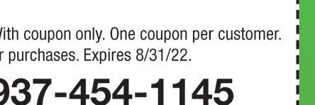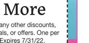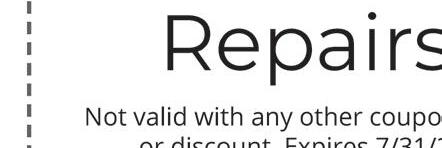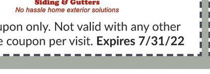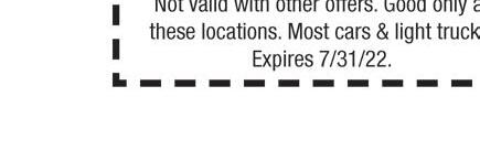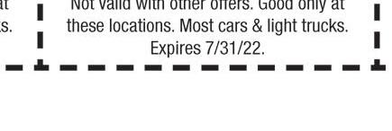 Must mention coupon when scheduling. Not valid with other o ers or discounts. Some restrictions apply. Expires 7/26/22.