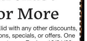 par ticipation may var y M ay not b e valid with other of er s o r $ o r % o f d s c o u n t s O r d e r m u s t i n c u d e a l r e q u i r e d t e m s D e l v e r y xat/eef artxe seirav( yb )erots yrevileD sredro tsum teem detats m n i m u m N o c a s h v a u e R e s t r c t o n s m a y a p p y –s e e s t o r e f o r d e t a l s Price & par ticipation may var y M ay not b e va d w th other of er s o r $ o r % o f d s c o u n t s O r d e r m u s t i n c u d e a l r e q u i r e d t e m s D e l v e r y xat/eef artxe rav( se yb )erots eD yrev sredro tsum teem detats m n i m u m N o c a s h v a u e R e s t r c t o n s m a y a p p y –s e e s t o r e f o r d e t a l s 25% OFF your first menu-price order when you download our app pizza is just a tap away *App orders only. See app for details. HUBER HEIGHTS . . . . . . . . . . 937-503-8100 5001 Brandt Pike Price & participation may vary. May not be valid with other offers or $ or % off discounts. Order must include all required items. Delivery fee/tax extra (varies by store). Delivery orders must meet stated minimum. No cash value. Restrictions may apply – see store for details. ©2022 Marco’s Franchising, LLC 14492-922 large specialty pizza & large 2-topping pizza USE CODE: HD3436 EXPIRES 11.17.22 you're gonna love every bite DELUXE $14.99 XLARGE 2-TOPPING PIZZA $7.99 PIZZA BOWL UP TO 4-TOPPINGS $21.99 MEDIUM SPECIALTY PIZZA, MEDIUM 1-TOPPING PIZZA & CHEEZYBREAD USE CODE: HDXL1499 NO CODE NEEDED USE CODE: HD9195 USE CODE: SAVE420 Expires 11.17.22 Expires 11.17.22 Expires 11.17.22 Expires 11.17.22 $4 OFF ANY ORDER OF $20 OR MORE AT MENU-PRICE $2499