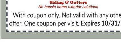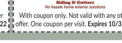 FREE FREE Roof Inspection & Replacement Estimate Gutter Guards With the Purchase of a New Roof & Gutters (937) 339-ROOF Present coupon at time of estimate. Prior sales excluded. Not valid with other o ers. Expires 10/31/2022 Present coupon at time of estimate. Prior sales excluded. Not valid with other o ers. Expires 10/31/2022 Present coupon at time of estimate. Prior sales excluded. Not valid with other o ers. Expires 10/31/2022 60 MONTHS ZERO DOWN ZERO INTEREST and FREE Lifetime Warranty Upgrade On Any New Roof!