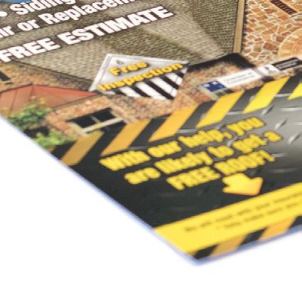 Separate from the pack. TMS postcards mail individually and are printed on heavier cardstock with a glossy finish. Price includes professional graphic design, high-quality printing, glossy UV coating, and mailing via USPS. Make an impact with direct-mail postcards. Local advertising made easy. Contact Bill. 937.520.7979 billclark@townmoneysaver.com Choose from 4 di erent sizes Several targeting options BASIC – Mail to every address* SMART – Mail to speci c addresses using demographic information EXACT – Mail to your own address list *Mail to an entire TMS market for the best value – limited availability. AS LOW AS 19¢ PER ADDRESS* FREE FREE Roof Inspection & Replacement Estimate Gutter Guards With the Purchase of a New Roof & Gutters (937) 339-ROOF Present coupon at time of estimate. Prior sales excluded. Not valid with other offers. Expires 9/30/2022 Present coupon at time of estimate. Prior sales excluded. Not valid with other offers. Expires 9/30/2022 Present coupon at time of estimate. Prior sales excluded. Not valid with other offers. Expires 9/30/2022 60 MONTHS ZERO DOWN ZERO INTEREST and FREE Lifetime Warranty Upgrade On Any New Roof!
