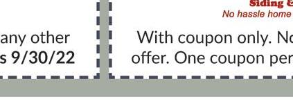 937.764.3850 myfivestarhomeservices.com FALL PRE-SEASON SALE Lowest Prices of the Year! (On Qualifying Equipment) 80% E ciency, up to 60k BTU. 13 SEER, up to 2 Ton. Permits not included. Code update not included. Not valid with other o ers or discounts. Must have existing air conditioner. Some restrictions may apply. Expires 9/27/22 96% E ciency, up to 60k BTU. 13 SEER, up to 2 Ton. Not valid for 80% to 96%. Permits not included. Code update not included. Not valid with other o ers or discounts. Must have existing air conditioner. Some restrictions may apply. Expires 9/27/22 80% E ciency, up to 60k BTU. Must mention coupon with scheduling. Not valid with other o ers or discounts. Some restrictions may apply. Call for any questions or concerns. Expires 9/27/22. 96% E ciency, up to 60k BTU. Not valid for 80% to 96%. Must mentioncoupon with scheduling. Not valid with other o ers or discounts. Some restrictions may apply. Call for any questions or concerns. Expires 9/27/22 WHOLE HOUSE HUMIDIFIER Must mention coupon with scheduling. Not valid with other o ers or discounts. Some restrictions may apply. Up to 3000 square foot home. Expires 9/27/22 499 Must mention coupon with scheduling. Not valid with other o ers or discounts. Some restrictions may apply. Expires 9/20/22 must schedule by Sept 20 up to 3000 square foot house FURNACE & AC 96% HIGH-EFFICIENCY 7,999 FURNACE & AC 6,999 GAS FURNACE 96% HIGH-EFFICIENCY 3,999 GAS FURNACE 3,499 Must mention coupon with scheduling. Not valid with other o ers or discounts. Some restrictions may apply. Expires 9/27/22 Must mention coupon with scheduling. Not valid with other o ers or discounts. Some restrictions may apply. Expires 9/27/22 Must mention coupon with scheduling. Not valid with other o ers or discounts. Some restrictions may apply. Expires 9/27/22 HVAC HVAC HVAC HVAC PLUMBING PLUMBING PLUMBING HVAC HVAC HVAC 14 SEER, up to 2 Ton. Permits not included. Code update not included. Not valid with other o ers or discounts. Must have existing heat pump. Some restrictions may apply. Expires 9/27/22 ELECTRIC FURNACE & HEAT PUMP 6,999 29 TANKLESS WATER HEATER OFF 500 TANK WATER HEATER OFF 150 DRAIN SERVICES 10 OFF Must mention coupon with scheduling. Not valid with other o ers or discounts. Some restrictions may apply. Expires 9/27/22 FREE HOME AIR CLEANER with purchase of furnace and AC system (Reg. $899) with any completed paid repair Must mention coupon with scheduling. Not valid with other o ers or discounts. Some restrictions may apply. Expires 9/27/22 FREE SERVICE CALL HVAC HVAC & PLUMBING (Reg. $99) (Reg. $99)