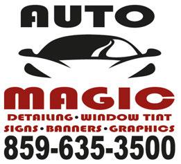 • Auto Detailing • Auto Magic is an authorized Llumar Window Tint Dealer • Llumar Clear Bra (PPF) • Signs, Banners, Graphics • Lifetime Ceramic Coating Like us on Facebook for seasonal promotions It takes more than luck to make your car look like new! CALL OR STOP IN FOR A QUOTE FOR ANY OF OUR SERVICES OR PACKAGES! Silver or Gold Detail Packages $50 OFF With TMS coupon. Not valid with other offers. Expires 3/31/24. Gift Certificates make great gifts! Any Services 15% OFF With TMS coupon. Not valid with other offers. Expires 3/31/24. 8119 ALEXANDRIA PIKE ALEXANDRIA KY