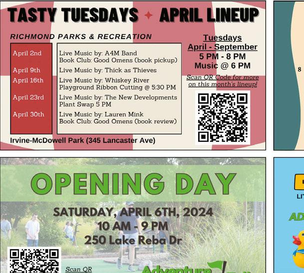 RICHMOND April 2024 Shop locally. Save locally. Scan our QR code to fi nd your perfect invitation! 1024 Ival James Blvd. Suite B, Richmond, KY (859) 575-1856 IvalJamesRd. Four Mile Rd. 25 SERVICES: