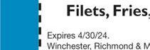830 Eastern Bypass, Richmond • 859-575-1669 Mon-Thu 11am-9:30pm, Fri & Sat 11am-10:30pm, Sun 11am-9pm Great atmospherenever too crowded - always an enjoyable and relaxed dining experience! Richmond’s best Mexican food Come enjoy our daily lunch buffet 11-3 - great for a quick lunch option! Your choice of meat folded in fresh made dough, & deep fried HappyHour: Mon-Thurs 2-7 $ 1 OFF Enchiladas Supreme With coupon only. Not valid with other offers. Expires 4/30/24. EL MEJOR • 859-575-1669 With coupon only. Not valid with other offers. Expires 4/30/24. EL MEJOR • 859-575-1669 With coupon only. Not valid with other offers. Expires 4/30/24. EL MEJOR • 859-575-1669 With coupon only. Not valid with other offers. Expires 4/30/24. EL MEJOR • 859-575-1669 $ 10.99 Chile Colorado Diced broiled steak with red chile sauce, served with rice and beans $ 1 OFF FREE with purchase of $30 or more (limit one coupon per customer per visit) CHEESE DIP BURRITO DELUXE Two chicken burritos topped with lettuce cheese and sour cream Empanadas coming soon! MARGARITA THURSDAYS! $2.99Margarita Special All Day Thursday!Every the Best Margaritas!