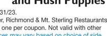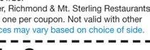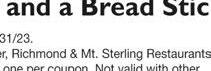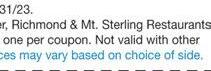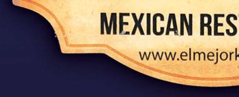 830 Eastern Bypass, Richmond • 859-575-1669 Mon-Thu 11am-9:30pm, Fri & Sat 11am-10:30pm, Sun 11am-9pm Great atmospherenever too crowded - always an enjoyable and relaxed dining experience! Richmond’s best Mexican food Come celebrate Independence Day with us! Come enjoy our daily lunch buffet 11-3 - great for a quick lunch option! Empanadas Your choice of meat folded in fresh made dough, & deep fried Elotes Mexican Street Corn Happy Hour: Mon-Thurs 2-7 $ 1 OFF Enchiladas Supreme With coupon only. Not valid with other offers. Expires 7/31/23. EL MEJOR • 859-575-1669 With coupon only. Not valid with other offers. Expires 7/31/23. EL MEJOR • 859-575-1669 With coupon only. Not valid with other offers. Expires 7/31/23. EL MEJOR • 859-575-1669 With coupon only. Not valid with other offers. Expires 7/31/23. EL MEJOR • 859-575-1669 $ 10.99 Chile Colorado Diced broiled steak with red chile sauce, served with rice and beans $ 1 OFF FREE with purchase of $30 or more (limit one coupon per customer per visit) CHEESE DIP BURRITO DELUXE Two chicken burritos topped with lettuce cheese and sour cream