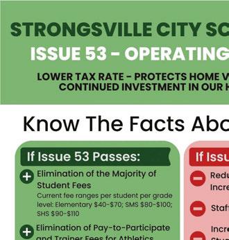 Strongsville City Schools is seeking a 4.9 mill continuous operating levy on the November 5, 2024 ballot. Issue 53 replaces a former 5.9 mill levy, which will lower tax rates, as well as protect home values. This levy will generate approximately $9.2 million annually for the District, allowing for the continued investment in the growth and development of our students, at one of the lowest tax rates in all of Cuyahoga County.