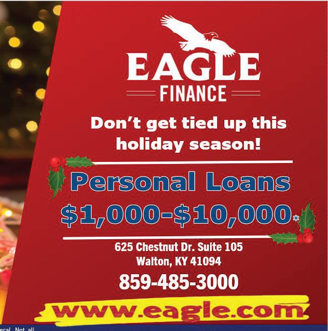 WALTON Published By Town Money Saver, Inc. Corporate Office • PO Box 356 • Lucas, OH 44843 © 2022 TMS Franchising, Inc. All rights reserved. For advertising information, call Terry: 859-307-6755 POSTAL CUSTOMER PRSRT STD ECRWSS U.S. POSTAGE PAID Town Money Saver, Inc. townmoneysaver.com HELP US HELP OTHERS! BUY MORE BAGELS! ORDER ONLINE AT COVELLI.COM/GOPINK OR SCAN HERE 444 Mount Zion Rd., Florence (next to Subway) 859-282-0917 www.goldcointradersKY.com Mon.-Fri. 10am-6pm, Nights & Weekends Available By Appointment Only. GET PAID CA$H NOW! Come experience the warmth of our customer service which sets us apart from the others ALWAYS FAIR AND HONEST PRICING, ALWAYS! Jewelers/Family of Jewelers • We Buy Gold In Any Form Gold Sweeps, White and Yellow Gold Settings and Diamonds • Certified, licensed sales • Posted prices • Highest price guaranteed • Family owned & operated • Friendly, professional service NOBODY PAYS MORE gold jewelry • coins • bullion Get other pricing, then come see us. GOLD & COIN TRADERS FREE JEWELRY EVAL. 30-min.appraisalverbal FREE COIN APPRAISAL 30-min. verbal appraisal