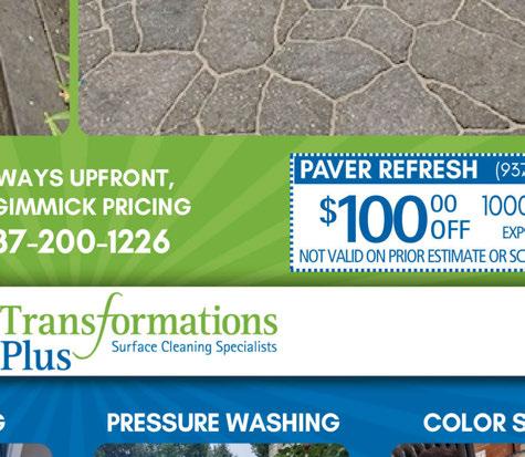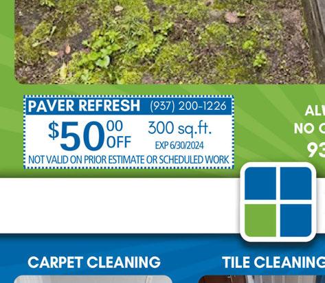2024 SPRING SPECIALS PROUDLY DISPLAY YOUR “I Got My Mulch At Champion Yard Sign” and Get $3 OFF Per Yard Of Mulch GoToChampion.com Not valid with any other coupon or previous purchase. Go I GOTMY MULCHAT 3600 Valley Street, Dayton Ohio 937.228.2730 GARDENER’S CHOICE MULCH ONLY $21.99 Per Cubic Yard (with coupon) (TD02) ULTRA-(BLACK or BROWN) MULCH ONLY $29.99 Per Cubic Yard (with coupon) (TD03) 937-228-2730 Not valid with any other coupon or previous purchase. Coupons are honored at retail pricing. Limit one coupon per offer. Expires 6/30/24. 937-228-2730 Not valid with any other coupon or previous purchase. Coupons are honored at retail pricing. Limit one coupon per offer. Expires 6/30/24. 937-228-2730 Not valid with any other coupon or previous purchase. Coupons are honored at retail pricing. Limit one coupon per offer. Expires 6/30/24. FREE LOCAL DELIVERY With purchase of Five (5) yards of mulch (TD01) 3600 Valley St – Dayton, OH 937.228.2730 • 340 N. Main St – Englewood, OH 937.836.8818 • 3400 Dryden Rd – Moraine, OH 937.203.0000 BAGGED MULCH SPECIAL 10 BAG S FOR $20 Ultra Black Only (TD04) 937-228-2730 Not valid with any other coupon or previous purchase. Coupons are honored at retail pricing. Limit one coupon per offer. Expires 6/30/24. Brown (Black) Gold Gardeners Choice Playground Mulch Ultra Black Ultra Brown Ultra Red ANDERSON 4-STEP BAGGED FERTILIZERTREATMENT FOR $129 Breken ServicesLLC Maintenance Remodel Handyman ...Honey Do Lists Are Our Specialty! Call or Text 937.238.2515 brekenservices@gmail.com Veteran Owned and Operated Since 2001 Scan to Add Our Contact to Your Phone... Minor Plumbing and Electrical Storm Doors Garbage Disposals FREE Estimates Usually Same Day Like Us on Facebook! Military Save 10% Breken ServicesLLC Maintenance Remodel Handyman ...Honey Do Lists Are Our Specialty! Call or Text 937.238.2515 brekenservices@gmail.com Veteran Owned and Operated Since 2001 Scan to Add Our Contact to Your Phone... Painting Ceiling Fans Faucets TV Mounting Landscape Haul Away Pressure Washing Carpentry Minor Plumbing and Electrical Storm Doors Garbage Disposals Like Us on Facebook! 937.238.2515 | brekenservices@gmail.com Like Us on Facebook! $25 OFF Service of $100 or more New customers only. With coupon. Not valid with any other offer. Expires 6-30-24 BREKEN SERVICES 1273 N. Fairfield Rd 2 Blocks North of Rt.35 937-320-1679 The Greene 4396 Holly Dr. 937-956-6300 TWO BEAVERCREEK LOCATIONS! Get Dad a puzzle for Father’s Day! Puzzles! Board Games! Brain Teasers! Legos! 15% OFF STOREWIDE! Regularly priced merchandise only. Sorry, sale does not apply to Legos, but it covers everything else! Expires 6/30/24