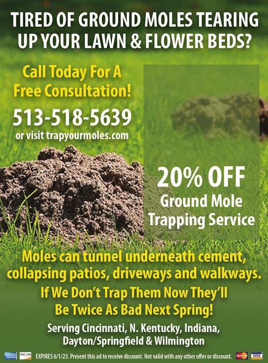 HIGH QUALITY LANDSCAPE SUPPLIES FOR PICKUP, DELIVERY AND INSTALLATION LET US HELP YOU WITH YOUR SPRING CLEAN UP. OhioGreenWorks.com O ce@ohiogreenworks.com 4322 E. ST. RT. 73 • Waynesville www.shopogw.com 10% OFF online orders only (coupon code TMS10OFF) Retail pickup or delivery only. Coupons not valid with other offers. Expires 5/31/23 OHIO GREEN WORKS 15% OFF online orders over $250 (coupon code TMS15OFF) Retail pickup or delivery only. Coupons not valid with other offers. Expires 5/31/23 OHIO GREEN WORKS Before After Before After Prefer DIY? We Deliver!