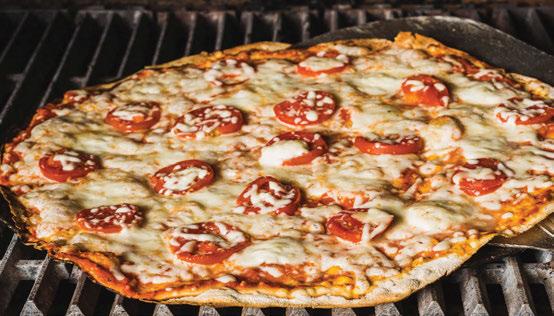 Preheat grill on high. Brush a square of foil with olive oil. Roll pizza dough onto foil, top with pizza sauce, cheeses and toppings. Pick up the edges of the foil and place directly on grill. Close grill and allow to cook for 5-7 minutes or until cheese is melted and edges begin to char. Remove from grill, transfer to a cutting board. Sprinkle with parmesan & pepper.