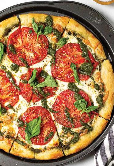 Preheat oven to 450°. Spread pesto on pizza crust. Top with tomatoes, bell peppers, olives, red onions, artichoke hearts and feta cheese. Bake for 8 to 10 minutes.