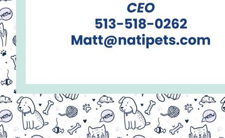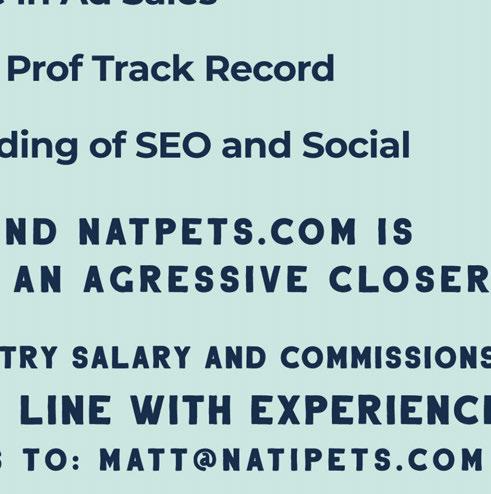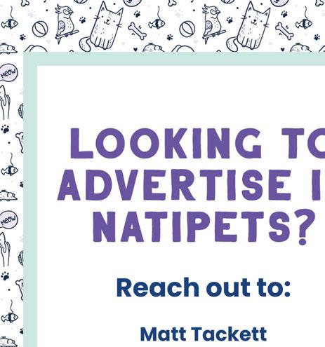 NatiPets and NatiPets.Com are trademarked protected brands. We are the sister company of Trap Your Moles LLC and The Doo Doo Doctor LLC. All content is protected and cannot be reproduced without the permission of the publisher. NatiPets is printed and distributed monthly by mail as well as hundreds of retail and pet establishments throughout the tri-state. If you would like to share your pet story or photos, please submit to: pets@natipets. com. For advertising rate information contact: Matt@natipets.com. For more information or for back copies of the publication, please visit: NatiPets.Com.