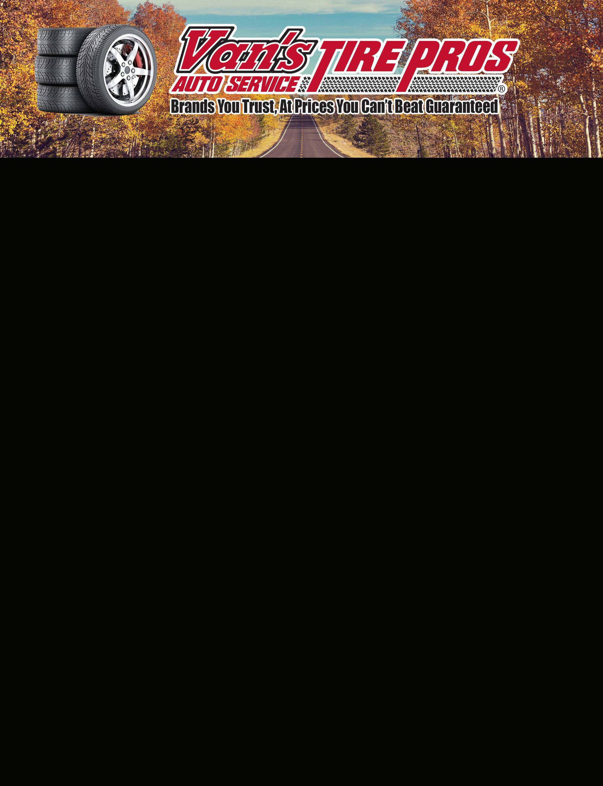 vanstirepros.com 185/65R15 65k $340 195/60R15 50k $360 195/60R15 70k $400 195/65R15 50k $340 195/65R15 50k $380 195/65R15 65k $380 195/65R15 70k $440 205/65R15 70k $400 215/70R15 50k $340 235/75R15 50k $420 235/75R15 40k $340 235/75R15 50k $380 205/55R16 70k $420 205/60R16 40k $400 205/60R16 70k $440 205/65R16 50k $380 215/55R16 50k $380 215/60R16 50k $380 215/60R16 65k $440 215/60R16 80k $460 215/65R16 50k $380 215/70R16 50k $380 225/60R16 50k $380 225/60R16 60k $400 225/60R16 75k $480 235/65R16 70k $460 235/70R16 60k $500 LT245/75R16 50k $620 LT265/75R16 50k $760 215/55R17 50k $400 215/55R17 60k $420 215/55R17 65k $440 215/55R17 80k $520 215/60R17 50k $460 225/50R17 50k $420 225/50R17 50k $560 225/50R17 70k $560 225/55R17 60k $540 225/55R17 80k $560 225/60R17 50k $420 225/60R17 60k $500 225/60R17 50k $400 225/60R17 65k $460 225/65R17 65k $520 225/65R17 65k $600 235/55R17 50k $440 235/60R17 70k $500 235/65R17 50k $400 235/65R17 50k $440 235/65R17 65k $560 245/65R17 50k $560 245/70R17 50k $500 245/75R17 50k $500 245/75R17 50k $560 265/70R17 50k $540 265/70R17 50k $580 265/70R17 70k $620 LT265/70R17 50k $660 LT285/70R17 50k $660 225/50R18 70k $460 225/55R18 50k $460 225/60R18 50k $440 235/45R18 60k $460 235/50R18 50k $500 235/50R18 55k $540 235/50R18 60k $560 235/55R18 40k $520 235/60R18 50k $460 235/60R18 60k $600 235/60R18 60k $640 235/60R18 70k $660 235/65R18 65k $560 245/60R18 60k $600 255/65R18 60k $620 265/65R18 65k $700 275/65R18 50k $760 LT275/70R18 50k $660 235/40R19 50k $560 245/45R19 60k $660 275/55R20 60k $560 275/55R20 50k $620 275/55R20 60k $660 275/60R20 60k $660 275/60R20 50k $740 285/45R22 50k $660 WADSWORTH 185 Broad St 330-336-6630 NORTH RIDGEVILLE 37775 Center Ridge Rd 440-327-7010 WATERLOO RD 449 E Waterloo Rd | Akron 330-724-7400 MANSFIELD 801 Lexington Ave 419-529-0865 ELLET 682 Canton Rd | Akron 330-784-7740 IBERIA 3596 St Route 309 419-468-1777 E. MARKET ST. 1725 East Market St | Akron 330-784-5454 MEDINA RD. 1451 Medina Rd | Medina 330-239-2371