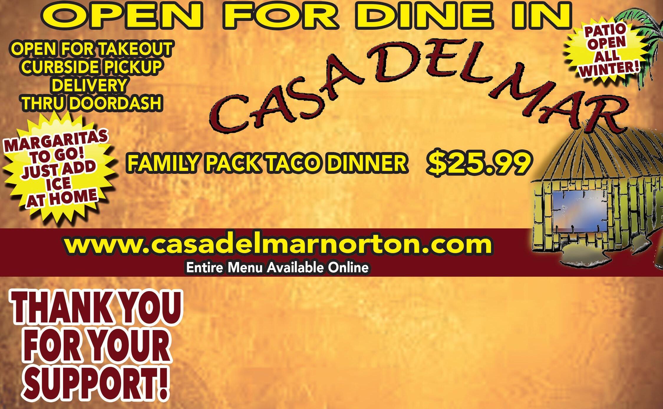 Hours: Monday - Friday 8am to 5pm WE WORK WITH ALL INSURANCE COMPANIES $100 OFF Any Collision Repair Deductible Free Estimate No Appt. Necessary Lifetime Warranty on Body & Paint Repairs Must present coupon. Not valid with any other offer. Expires 12/3/20 Lube, Oil & Filter $19.95 Most cars. Up to 5 Qrts. Synthetic excluded. Plus shop supplies & tax. MUST PRESENT COUPON AT TIME OF DROP OFF. Expires 12/3/20 Coolant Service $59.95 Most cars. MUST PRESENT COUPON AT TIME OF DROP OFF. Plus shop supplies & tax. Not valid with any other offer. Expires 12/3/20 FALL SPECIAL LUBE, OIL & FILTER TIRE ROTATION WIPER BLADES BRAKE INSPECTION CHECK CHARGING SYSTEM 27 POINT VEHICLE INSPECTION $69.95 Most cars. Up to 5 Qrts. Synthetic excluded. Plus shop supplies & tax. MUST PRESENT COUPON AT TIME OF DROP OFF. Expires 12/3/20 Authentic Mexican Restaurant 3725 outh leveland-Massillon Rd., Norton, hio 2 3 33 -8 5$3 OFF $25 OR MORE DINNER CHECK CASA DEL MAR 3725 South Cleveland-Massillon Rd, Norton, OH Valid only with coupon. Not valid with any other offer. Not valid Fri or Sat. Expires 12/3/20 $5 OFF SPEND $35 GET CASA DEL MAR 3725 South Cleveland-Massillon Rd, Norton, OH Valid only with coupon. Not valid with any other offer. Not valid Fri or Sat. Expires 12/3/20 10 Tacos Beef or Chicken - Hard or Soft Rice & Beans • Lettuce & Cheese 2 Bags of Chips & 3 Salsas (Grilled Steak or Chicken $30)