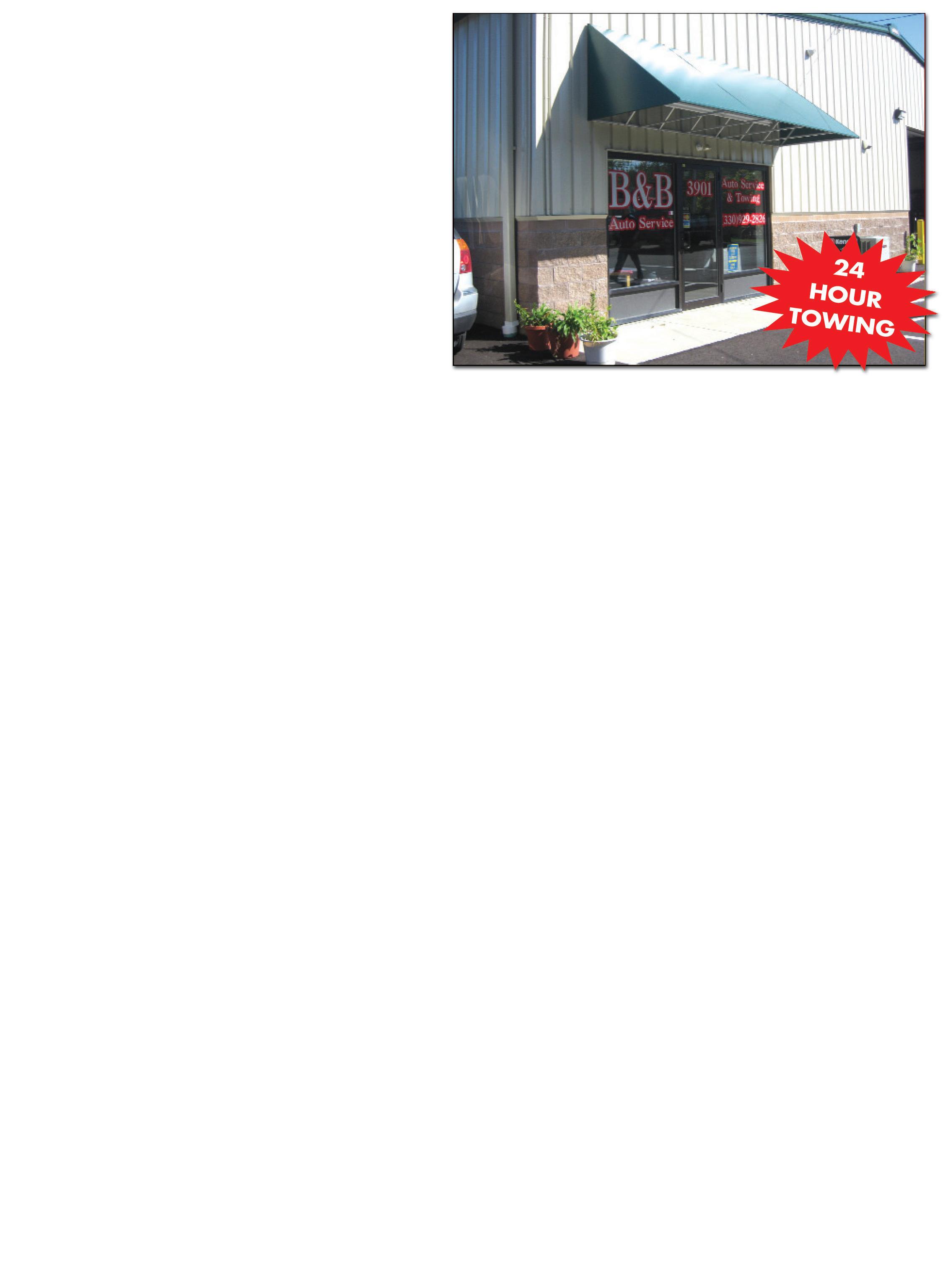 B&B 1/2 OFF TOW WITH REPAIR (of $100 or more within 10 miles) CHOOSE YOUR DISCOUNT from the following services: OIL CHANGE SPECIAL $ $25 OFF Most Cars. With Coupon. Expires 12/3/20. Most Cars. With Coupon. Expires 12/3/20 Synthetic oil extra. Plus tax & applicable materials charge. Most cars. With Coupon. Filter may be extra. Expires 12/3/20. ENGINE DIAGNOSTIC E-CHECK DIAGNOSTIC FUEL SYSTEM CLEAN AIR CONDITIONING SERVICE FALL TUNE-UP • Oil Filter Change (5 quarts max) • Lubrication & Fluid Level Check • Safety Inspection (multiple point incl. lights, wipers, etc.) • FREE Brake Inspection or Tire Rotation Front or Rear Brake Service $$2595 Only SLIDING SCALE COUPON $10 OFF $100 Repair $20 OFF $30 OFF $50 OFF $ OFF $20 OFF One Discount per visit. Expires 12/3/20. Auto Service 3901 State Road, Cuyahoga Falls Formerly From 2nd Street Downtown 330-929-2826 330-929-2826 FREE DIAGNOSTIC TESTS WITH REPAIR • Batteries, Belts & Hoses • Shocks • Brake Service • Starters • Check Engine Light • Struts • Diagnostics • Suspension • Exhausts • Tire Rotation • Maintenance • Towing • Oil Changes • Tune Ups and More! • Serpentine Belts Certified E Repair Facility Serving the Community for Over 42 Years! FREE SHUTTLE SERVICE