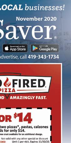 $3.50 Charge for Delivery • Limited Area • Minimum Order $10.00 14” Large 1-Topping Pizza $1249 Fairfield Pizza & Pasta • 513-829-2200 With this coupon only. Only one coupon or offer per household. $3.50 delivery charge. Offer Expires 11/30/2020. 12” Medium 1-Topping Pizza $999 Fairfield Pizza & Pasta • 513-829-2200 With this coupon only. Only one coupon or offer per household. $3.50 delivery charge. Offer Expires 11/30/2020. Any 2 Pasta Dinners Includes: Salad & Garlic Bread Chargrilled Chicken & Meatballs extra $1499 Fairfield Pizza & Pasta • 513-829-2200 With this coupon only. Only one coupon or offer per household. $3.50 delivery charge. Offer Expires 11/30/2020. Steak Hoagie $500 Fairfield Pizza & Pasta • 513-829-2200 With this coupon only. Only one coupon or offer per household. $3.50 delivery charge. Offer Expires 11/30/2020. 16” X-Large 1-Topping Pizza $1449 Fairfield Pizza & Pasta • 513-829-2200 With this coupon only. Only one coupon or offer per household. $3.50 delivery charge. Offer Expires 11/30/2020. 14” Large 1-Topping Pizza & 12” Medium Specialty Pizza $2199 Fairfield Pizza & Pasta • 513-829-2200 With this coupon only. Only one coupon or offer per household. $3.50 delivery charge. Offer Expires 11/30/2020. 12” Medium 1 Topping Pizza and 8 Wings $1799 Fairfield Pizza & Pasta • 513-829-2200 With this coupon only. Only one coupon or offer per household. $3.50 delivery charge. Offer Expires 11/30/2020. Gift Cards Available FIND US ON THE TMS APP Sunday - Thursday 11am - 9pm, Friday & Saturday 11am - 11pm 829-2200 Like us on Like us on Family Pasta with Lg Garlic Bread and Family Salad Chargrilled Chicken & Meatballs extra $2599 Fairfield Pizza & Pasta • 513-829-2200 With this coupon only. Only one coupon or offer per household. $3.50 delivery charge. Offer Expires 11/30/2020. ON-LINE ORDERING NOW AVAILABLE! www.fairfieldpizzaandpasta.com POSTAL CUSTOMER PRSRT STD ECRWSS U.S. POSTAGE PAID Town Money Saver, Inc. FIND US ON THE TMS APP FAIRFIELD Published By Town Money Saver, Inc. Corporate Office • PO Box 356 • Lucas, OH 44843 © 2020 TMS Franchising. All rights reserved. For advertising information, call Kelsey 419-343-1734 NEXT ISSUE IN HOMES: December 3, 2020 ADVERTISING DEADLINE: November 20, 2020 townmoneysaver.com