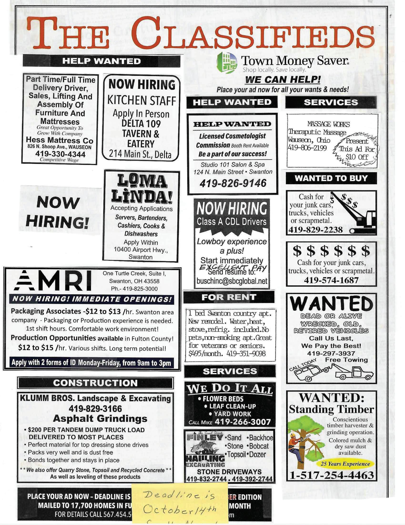 LIVING ROOM DINING BEDROOM 826 N Shoop Ave, Wauseon, Ohio HESS MATTRESS CO. ...more than a mattress store 419-330-4344 $50 OFF $50 OFF 826 N. SHOOP AVE. • WAUSEON • 419-330-4344 NOW HIRING! Part Time/Full Time DELIVERY DRIVER • SALES • LIFTING ASSEMBLY OF FURNITURE & MATTRESSES Great Opportunity To Grow With Company! We Offer Competitive Wages! • Power Washing • Sealing www.hiteconcrete.com Ask about our NEIGHBORHOOD referral discount! Licensed & Insured. Locally owned & operated - Serving Ohio, Michigan & Indiana 10% OFF Any Concrete Leveling Job! OF $200 OR MORE! Must present coupon at time of acceptance. Expires 10/31/20 419-875-4279 1-866-404-4483 My business is the direct result of the support and referrals from people like you…Thank you! Looking to buy or sell? Call me!