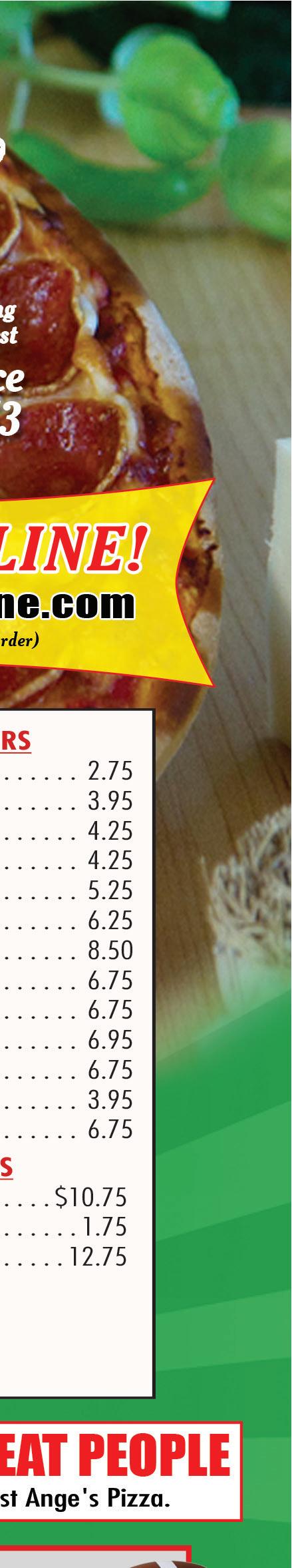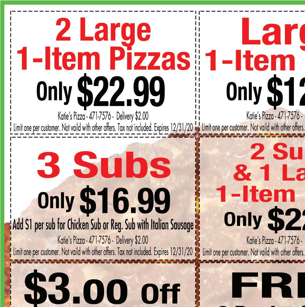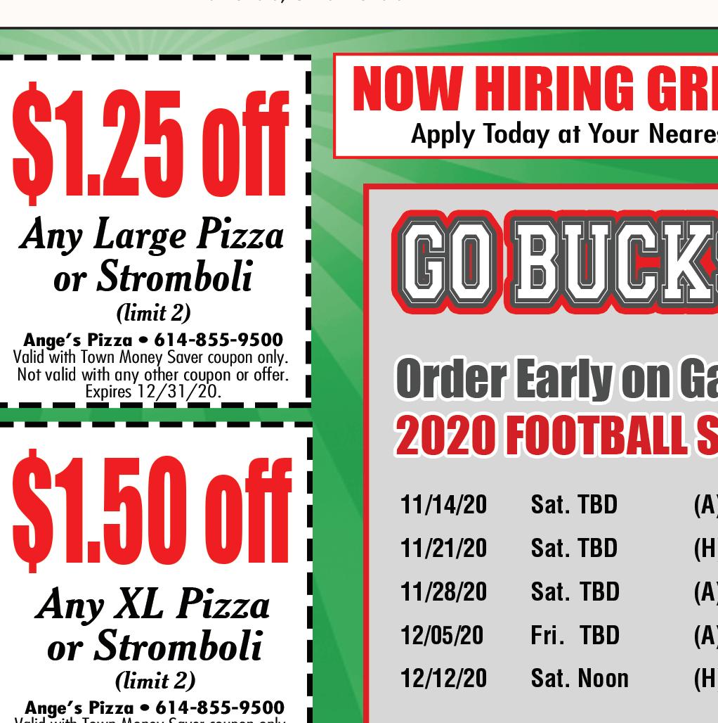 614-855-5858 4926 Morse Rd. Columbus OPEN FOR CARRY OUT & DELIVERY Temporary Hours: Sun-Thurs 11am-8pm; Fri & Sat 11am-9pm With this Town Money Saver coupon only. Cannot be combined with any other offers. Must present coupon. Expires 12/3/20. TMS With this Town Money Saver coupon only. Cannot be combined with any other offers. Must present coupon. Expires 12/3/20. TMS With this Town Money Saver coupon only. Cannot be combined with any other offers. Must present coupon. Expires 12/3/20. TMS With this Town Money Saver coupon only. Cannot be combined with any other offers. Must present coupon. Expires 12/3/20. TMS With this Town Money Saver coupon only. Cannot be combined with any other offers. Must present coupon. Expires 12/3/20. TMS $2 OFF Item Pizza $4 OFF 20% OFF Any order $5 OFF FREE Garlic Cheese Bread with any 16” Pizza We deliver with Just click on deliver on our website We Can Make Individual Pizzas & Box Lunches For Your Catering Event!