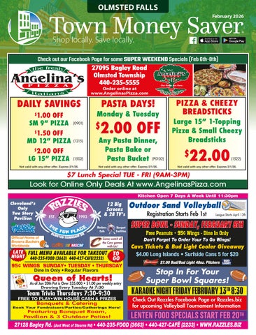 WWW.SPECIALTOUCHCLEANERS.COM | GREEN TIME TO SIGN UP FOR FALL LEAGUES Junior League Starts September 12th Saturdays 9am TUESDAY NIGHT LADIES LEAGUE September 8th 4 Person Team - 7pm Sign Up for Any Fall League GET 2 FREE GAMES OPEN BOWLING EVERY WEDNESDAY $2 GAMES! Tues - Thurs 2pm - 10pm • Fri 3pm - 11pm Sat Closed • Sun 4pm - 9pm • Mon Closed OPEN FOR DINE IN & CARRY OUT Mon-Thurs 11am to 10pm • Fri & Sat 11am to 10:30pm • Sun 11am to 9:30pm 1485 S. Arlington Street • AKRON 330-785-3724 1154 Hinkle Dr. • WADSWORTH 330-334-0020 WE ACCEPT ALL COMPETITOR COUPONS $5 OFF $30.00 or More Purchase Alcohol Excluded. Valid only w/coupon. Not valid w/other offers. Expires 9/10/2020 Town Money Saver - El Rncon $3 OFF $25.00 or More Purchase Alcohol Excluded. Valid only w/coupon. Not valid w/other offers. Expires 9/10/2020 Town Money Saver - El Rncon $3 OFF $25.00 or More Purchase Alcohol Excluded. Valid only w/coupon. Not valid w/other offers. Expires 9/10/2020 Town Money Saver - El Rncon HALF OFF Buy 1 Lunch, Get 1 Lunch Alcohol Excluded. Valid only w/coupon. Not valid w/other offers. Expires 9/10/2020 Town Money Saver - El Rncon