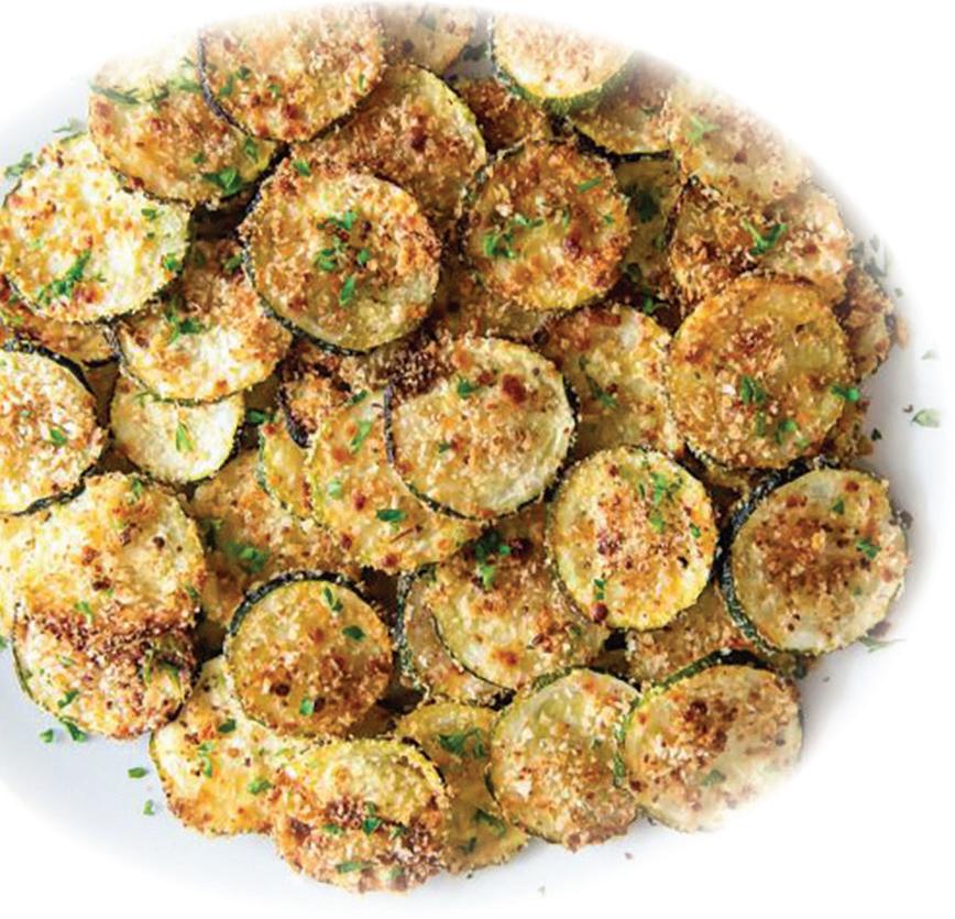 Preheat the oven to 450 F. Coat a baking sheet with cooking spray. Slice the zucchini into 1/4” thick rounds. In a medium bowl, toss the zucchini with oil. In a small bowl, combine the Parmesan, bread crumbs, salt, and a few turns of pepper. Dip each round into the Parmesan mixture, coating it evenly on both sides, pressing the coating on to stick, and place in a single layer on the prepared baking sheet. Bake the zucchini rounds until browned and crisp, 25 to 30 minutes. Serve immediately.