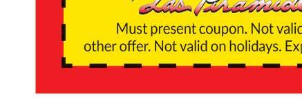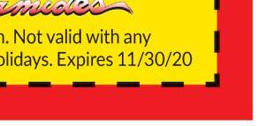 WE DELIVER Delivery orders must meet minimum amount. $2399 Large Specialty Pizza & Large 2-Topping Pizza $1399 XLarge 2-Topping Pizza Valid at Brandt Pike and Springboro Pointe locations only. Delivery area may vary. Not valid with other o ers or discounts. Must present coupon. Please mention when ordering. Expires 11/30/2020. TMS $1499 Large 2-Topping Pizza and CheezyBread $999 Large Pepperoni Magnifico USE CODE: HD1614 Limited Time Only Valid at Brandt Pike and Springboro Pointe locations only. Delivery area may vary. Not valid with other o ers or discounts. Must present coupon. Please mention when ordering. Expires 11/30/2020. TMS Valid at Brandt Pike and Springboro Pointe locations only. Delivery area may vary. Not valid with other o ers or discounts. Must present coupon. Please mention when ordering. Expires 11/30/2020. TMS Valid at Brandt Pike and Springboro Pointe locations only. Delivery area may vary. Not valid with other o ers or discounts. Must present coupon. Please mention when ordering. Expires 11/30/2020. TMS Valid at Brandt Pike and Springboro Pointe locations only. Delivery area may vary. Not valid with other o ers or discounts. Must present coupon. Please mention when ordering. Expires 11/30/2020. TMS Specials & Coupons are limited time. Participating locations only; cannot be combined with other offers. Price does not include delivery charge or taxes, (varies by location). Delivery orders must meet minimum amount. 12 slices 8 slices XL L 8 slices 6 slices M S Includes our original sauce and signature three cheeses. Unless noted, calories are listed per slice. ◆ build your own pizza ◆ ◆ local delights ◆ O R I G I N A L C R I S P Y T H I N T H I C K L I T E G L U T E N F R E E † CHOOSE YOUR CRUST CHOOSE YOUR TOPPINGS $10.99 Medium Specialty Pizza $12.99 XLarge 2-Topping Pizza Expires in 3 weeks. Participating locations only; cannot be combined with other offers. Price does not include delivery charge or taxes, (varies by location). Delivery orders must meet minimum amount. Expires in 3 weeks. Participating cannot be combined with other offers. include delivery charge or taxes, (varies Delivery orders must meet minimum EVERY STORE. EVERY DAY. THE ITALIAN WAY. HOT DELIVERY OR QUICK CARRYOUT ORDER ONLINE AT MARCOS.COM Specialty Pizzas DELUXE ALL MEAT CHICKEN FRESCO WHITE CHEEZY GARDEN HAWAIIAN CHICKEN Sides CHEEZYBREAD MEATBALL BAKE Wings CHICKEN DIPPERS CHICKEN WINGS Pepperoni Old World Pepperoni Italian Sausage Bacon Ham Steak Meatballs Grilled Chicken Ground Beef Anchovies Mushrooms Onions Red Onions Green Peppers Banana Peppers Jalapeños Black Olives Green Olives Spinach Tomatoes Pineapple Extra Cheese Feta Cheese Cheddar Cheese Shaved Parmesan 12 slices 8 slices XL L 8 slices 6 slices M S ◆ build your own pizza ◆ ◆ local delights ◆ PEPPERONI MAGNIFICO PIZZA O R I G I N A L C R I S P Y T H I N T H I C K L I T E G L U T E N F R E E † CHOOSE YOUR CRUST CHOOSE YOUR TOPPINGS $10.99 Medium Specialty Pizza $12.99 XLarge 2-Topping Pizza Expires in 3 weeks. Participating locations only; cannot be combined with other offers. Price does not include delivery charge or taxes, (varies by location). Delivery orders must meet minimum amount. Expires in 3 weeks. Participating cannot be combined with other offers. include delivery charge or taxes, (varies Delivery orders must meet minimum Local Delights PEPPERONI MAGNIFICO PIZZA THE BIG CHEESE PIZZA CRAVING MORE? Go to Marcos.com to view our full menu with subs, salads, desserts & more! NOW HIRING 937-503-8100 5001 Brandt Pike Huber Heights $ 699 Available for a limited time at participating locations. Prices may vary. Dollar and Percent o o ers are not combinable with other o ers. O ers exclude Big Square Deal. Gluten free crust and additional toppings will incur additional charges. Order must include all qualifying items for each o er. Price does not include delivery charge/taxes (varies by location). Delivery orders must meet stated minimum amount. No cash value. Please mention coupon when ordering and present when paying. Terms and conditions may apply (see o er for details). Pepsi-cola, Pepsi and the Pepsi globe are trademarks of Pepsico, Inc. ©2020 Marco’s Franchising, LLC 13124-220 One Topping 1 Medium $999 Large 1-Topping Pizza USE CODE: HD1014 Limited Time Only USE CODE: HD5334 Limited Time Only USE CODE: HD215 Limited Time Only USE CODE: HD9911 Limited Time Only CODE: MED699 UNLIMITED QUANTITIES FOR JOIN OUR TEAM Application