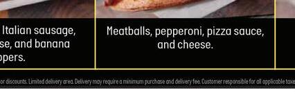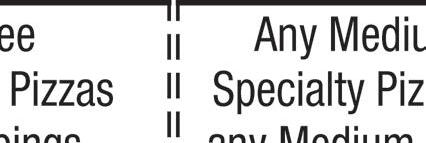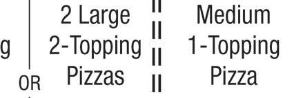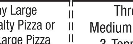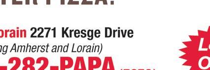 Prices and participation may vary. WE DELIVER LARGE 1-topping pizza USE CODE HD1014 Expires 12/3/20 Participating locations only; cannot be combined with other offers. Price does not include delivery charge or taxes, (varies by location). Delivery orders must meet minimum amount. Expires 12/3/20 Participating locations only; cannot be combined with other offers. Price does not include delivery charge or taxes, (varies by location). Delivery orders must meet minimum amount. Expires 12/3/20 Participating locations only; cannot be combined with other offers. Price does not include delivery charge or taxes, (varies by location). Delivery orders must meet minimum amount. Expires 12/3/20 Participating locations only; cannot be combined with other offers. Price does not include delivery charge or taxes, (varies by location). Delivery orders must meet minimum amount. USE CODE: HD5334 USE CODE: HD1212 USE CODE: HD11 USE CODE: HD187 $14.99 Large Specialty Pizza $23.99 Large Specialty & Large 2-Topping Pizzas $11.99 Medium Specialty Pizza $19.99 2 Medium 1-Topping Pizzas, CheezyBread & 2-Liter Specials and coupons are limited time. Participating locations only; cannot be combined with other o ers. Price does not include delivery charge or taxes, (varies by location). Delivery orders must meet minimum amount. $999 ◆ ORDER ONLINE AT MARCOS.COM ◆ LORAIN 2130 LEAVITT RD 440-282-3000 1957 N. RIDGE RD E 440-277-7777 2311 COLORADO AVE 440-288-3000