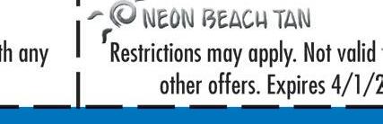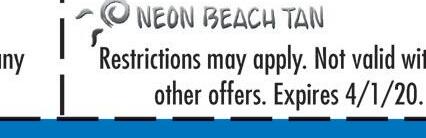 $700 $5999 FREE $10 OFF Want a FREE TAN ? Text “neon” to 411669 State-of-the-Art Beds MULTIPLE LEVELS OF TANNING $14 99 MHERST OCKY IDDLEBURG 19585 D IVER ) • R • 440-333-3050 $4999 30% OFF FREE $1999 Restrictions May apply. Not valid with Restrictions May apply. Not valid with any other o ers. Expires 11/30/20 Restrictions May apply. Not valid with any other o ers. Expires 11/30/20 Restrictions May apply. Not valid with any other o ers. Expires 11/30/20 Restrictions May apply. Not valid with any other o ers. Expires 11/30/20 3 SPRAY TANS LOTION BOTTLES & 2 FREE TANS BUY 1 MONTH & GET A 5TH WEEK 5 TANS ANY LEVEL BED NEW CUSTOMERS ONLY $99 UNLIMITED TILL THE END OF THE YEAR! BIGGEST SALE OF THE YEAR!