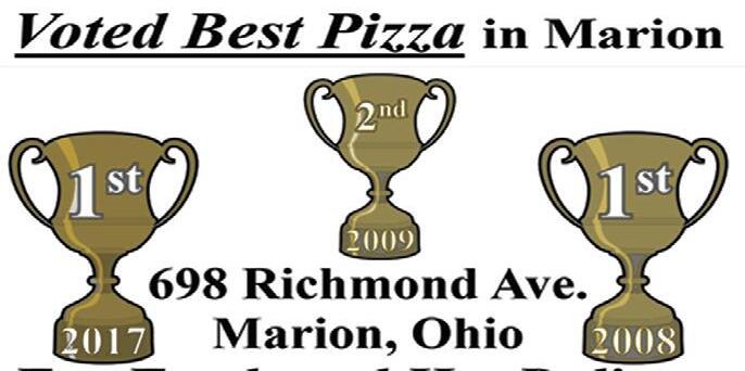 740-383-2791 • 810 Davids Street 18” 1-Item Pizza Only $999 Must Present Coupon. Expires 7/16/20 60 Pc. Snack Bucket Chicken Fingers, Mushrooms, Onion Rings, Corn Dogs, Pepperoni Sticks, Mozzarella Sticks, Assorted Veggies $2199 or 30 Pc. $1399 Must Present Coupon. Expires 7/16/20 Super Special Large Pizza With Your Choice of 3 Toppings (excludes extra cheese) Only $799 Must Present Coupon. Expires 7/16/20 16” Sub Sale Your Choice: Pizza, Italian, Ham, Turkey 1 Only $799 2 Only $1399 Must Present Coupon. Expires 7/16/20 20 Boneless Chicken Wings Your Choice: Regular, BBQ or Hot Only $1399 10 Pc. $6.99 Must Present Coupon. Expires 7/16/20 25 Pc. Walleye Bucket Includes Walleye, French Fries and Your Choice of Side Tub: 6 Breadsticks, Tartar Sauce & Cheese Sauce Plus tub of Dessert Only $2799 Must Present Coupon. Expires 7/16/20 10 Char Burgers Sloppy Joe, Shredded Chicken or BBQ Pork & French Fries (Sorry No Mixing) ($29 Value) Only $1699 Must Present Coupon. Expires 7/16/20 Pizza Party Pack Giant 18” Pepperoni Pizza, 6 Chicken Wings (Your choice: hot, bbq or original) 6 Mozzarella Cheese Sticks, 6 Breadsticks (Choice of ranch dip or cocktail sauce) 1 lb of Potato Salad & Dessert Only $2799 Must Present Coupon. Expires 7/16/20 LARGE TRIPLE PEPPERONI PIZZA 6 GARLIC CHEESE BREADS WITH CHOICE OF CHEESE OR PIZZA SAUCE & 8 BUFFALO CHICKEN CHUNKS A $21 Value Only $1699