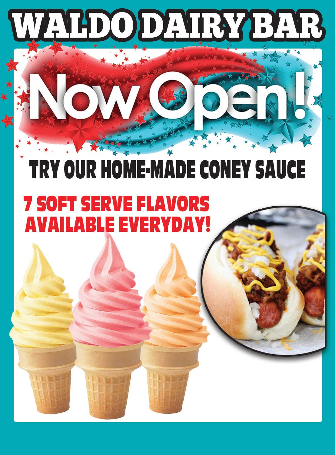 Monday - Saturday 12 - 9pm • Sunday 2 - 9pm 189 N. Marion St. • Waldo • 740-361-9811 SMALL $2.00 MEDIUM $2.50 LARGE $3.00 Hot Dog Coney only $2.25