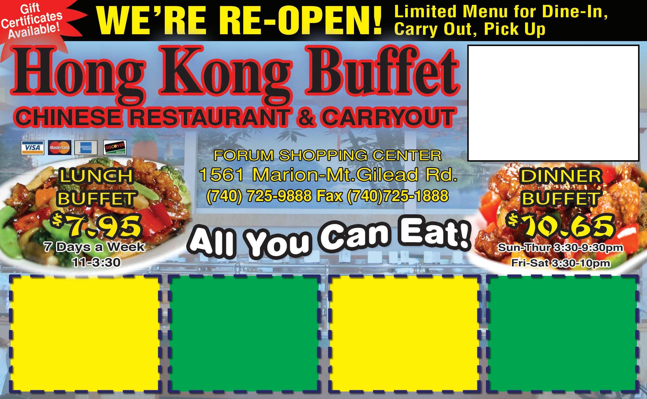 $1.00 Off Two Regular Lunch Buffets Not valid with any other offer. Not valid on Holidays. With TMS coupon only. Expires 7/16/20. Dine In Only TMS $2.00 Off Two Regular Dinner Buffets TMS $3.00 Off Dinner Buffet Only Purchase of $30 or More TMS $5.00 Off Dinner Buffet Only Purchase of $45 or More TMS Hong Kong Buffet Hong Kong Buffet Hong Kong Buffet Hong Kong Buffet Not valid with any other offer. Not valid on Holidays. With TMS coupon only. Expires 7/16/20. Dine In Only Not valid with any other offer. Not valid on Holidays. With TMS coupon only. Expires 7/16/20. Dine In Only Not valid with any other offer. Not valid on Holidays. With TMS coupon only. Expires 7/16/20. Dine In Only