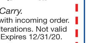 HOURS: Mon-Thurs 10-6 • Fri 10-4 • Sat 10-2 vinyl plank carpet laminate wood vinyl 8190 LEWIS AVE. 734.847.1198 Corner of Lewis & Dean, Temperance www.cartercarpet.com CARPET .99¢ - $2.29 sq. ft. Several In Stock Colors & Styles To Choose From LAMINATE $2.99 sq. ft. Several Colors To Choose From 10% OFF MATERIAL With TMS coupon. Not valid with other offers. Exp.10/31/20 MATERIAL ONLY. Offer does not apply to in-stock material or previously placed orders. With TMS coupon. Not valid with other offers. Exp. 10/31/20 LVP $2.99 sq. ft. Several Colors To Choose From Luxury Vinyl Plank With TMS coupon. Not valid with other offers. Exp.10/31/20 With TMS coupon. Not valid with other offers. Exp.10/31/20 Proudly Offering Military/Veteran Discounts REMNANTS & ROLL ENDS .99¢ sq. ft. 12 Months Same As Cash! Professional Installation you can trust Locally owned & operated for over 30 years